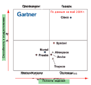 | Рисунок 1. Важнейшие игроки на рынке беспроводных коммутаторов и их позиционирование. |