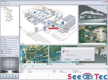 Там, где необходимо управление большим числом камер наблюдения, в качестве «пульта управления» рекомендуется использовать внешнее решение: именно такое предлагает Seetec в виде программного обеспечения в архитектуре клиент-сервер (см. Рисунок 3). Оно связывает камеры и видеосерверы отдельных производителей (Axis, Mobotix, JVC и Panasonic), поддерживает управление камерами, а также функции поворота, наклона и изменения масштаба изображения, предоставляет собственную систему распознавания движения, сохранение изображений на основе событий или времени. Решение Seetec способно масштабироваться до 1000 камер и, по данным производителя, интегрировать чужие системы, в частности системы обнаружения пожара или взлома, управления зданием и контроля доступа.