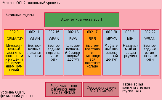 Структура проектной группы IEEE Р802 (комитет стандартов для локальных и региональных сетей).
