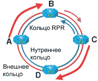 | Рисунок 2. Кольцевая архитектура RPR в соответствии со стандартом IEEE 802.17. |