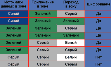 Сеть разделена на сегменты (зоны) с различными требованиями к безопасности (см. Рисунок 1), которые, в свою очередь, физически разделены между собой и могут быть разделены (по приложениям, например) и дальше (в частности, при помощи виртуальных сетей). Все сетевые объекты в широком смысле (приложения, системы, пользователи) приписываются к соответствующей зоне в зависимости от их владельца/ответственного. Для каждой зоны действуют свои директивы по инсталляции/конфигурации/эксплуатации систем (в отношении документации, управления пользователями, управления доступом, повышения надежности системы, регистрации, непрерывности бизнеса и т. д.). Коммуникационные взаимосвязи между зонами подчиняются четким правилам; так, они могут устанавливаться только между двумя соседними зонами, а определенные коммуникационные процессы должны обязательно шифроваться (см. Рисунок 2).