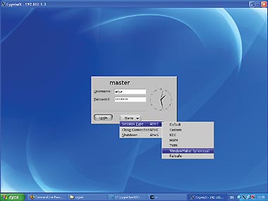 После установки программы на рабочем столе создается ярлык Cygwin, посредством которого запускается оболочка bash, так что можно работать со знакомой командной строкой Linux. С ее помощью можно запустить Х-сервер в режиме Х-терминала: X -query 192.168.1.3. Вместо IP-адреса 192.168.1.3 следует указать IP-адрес компьютера, где находится менеджер дисплеев kdm. На экране должно появиться приглашение войти в систему на машине Linux. После входа активизируется оконный менеджер, и теперь можно работать на машине Linux с отображением данных в Windows.