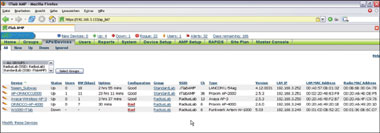 Тестовая среда состояла из официально поддерживаемых АМР моделей точек доступа Proxim AP-4000 и AP-2000, Avaya AP-3 (той же конструкции, что и АР-2000), а также Funkwerk (ранее Artem) W1000 и Lancom L-54ag немецкой разработки. Оба устройства от Proxim обслуживали две радиоячейки — 802.11g и 802.11а, в то время как остальные работали только в режиме 802.11g. Все пять точек доступа АМР довольно быстро и корректно распознала в сети, а посредством нескольких нажатий на кнопку мыши они были отнесены к разным группам управления. Однако при передаче групповых настроек уже при таком небольшом количестве точек доступа выяснилось, что Airwave делает акцент на поддержке определенных производителей, и возможности управления разными моделями слишком сильно разнятся.