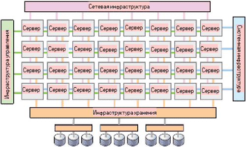 Рисунок 1. При помощи вычислительной архитектуры Matrix серверы делят между собой файлы приложений и данных и в случае необходимости выделяются для выполнения различных приложений.