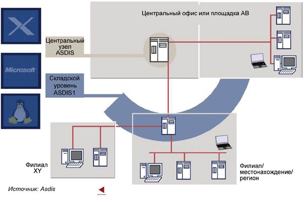 Рисунок 2. В гетерогенных средах независимое от платформы решение должно позволять управлять клиентами из центра.