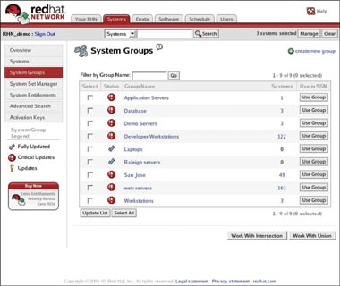 | Рисунок 3. Каналы, как в данном случае у Red Hat Network, облегчают обновление клиентов Linux. |