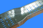 Перфорированные лотки наиболее популярны. Они изготавливаются путем проката оцинкованной ленты и снабжаются крышками (см. Рисунок 1). Плоская стальная лента перфорируется отверстиями нужного размера и сгибается в профиль. Для защиты лотка, соединительных элементов и системы крепления может применяться сталь с гальванопокрытием с покрытием цинком (по методу Сендзимира), покрытием из горячего цинка или эпоксидной смолы, либо они изготавливаются из нержавеющей стали. Отверстия перфорированного лотка позволяют выводить из него гофротрубу и кабель и крепить лоток к потолку на шпильках прямо через корпус. Наименее дорогое решение - гальванопокрытие по методу Сендзимира, производители часто используют такой вид цинкования для экономичных систем, монтируемых в неагрессивных средах.