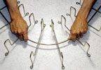 Известная дизайном своих кабельных коробов компания Marchall Tufflex нашла оригинальное решение и в области проволочных лотков. Она выпускает линейку SNAKEWAY - гибкий стальной кабельный лоток, который можно прокладывать в любом направлении, огибая препятствия без нарушения целостности конструкции. Лотки SNAKEWAY применяются в навесных, настенных или напольных инсталляциях, при установке под фальшполами или в качестве стояков на вертикальных поверхностях. Это изгибаемая вручную конструкция (см. Рисунок 8) соединяется с помощью всего лишь одного элемента - для крепления всех типов лотков данной серии используются крепежные кольца. Они отформованы в виде ножек, которые поддерживают кабель и не требуют применения дополнительных скоб. Для монтажа таких лотков специальный инструмент не нужен, и, по данным ICS, при работе с лотками SNAKEWAY экономится до 85% времени.