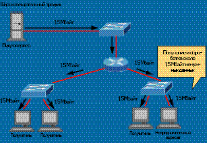 Широковещательный трафик вынуждены принимать даже те машины, которым он не предназначен.