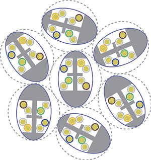 | Рисунок 3. Жгут из семи кабелей U/UTP. Эллиптическая форма поперечного сечения достигается за счет несимметричного сепаратора, что улучшает параметры межкабельного переходного затухания. |