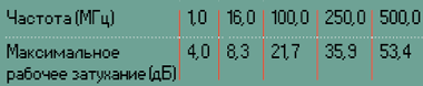 | Таблица 1. Рабочее затухание на опорных частотах. |