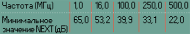 | Таблица 4. Суммарное межкомпонентное переходное затухание на опорных частотах. |