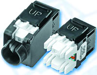 Данное решение востребовано как в моноблочных коммутационных па-нелях, так и в отдельных модулях для наборных панелей и информационных пользовательских розеток. Оно позволяет сохранить однорядное расположение розеточных модулей. Это улучшает эстетический вид панели, а также существенно облегчает нанесение пользовательской маркировки и ее считывание в процессе эксплуатации кабельной системы.