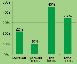 на 55%, а услуг IP-телефонии — на 45%. К 2008 г. доля документальной связи увеличится с 17 до 27%, и ее распространение будет стимулировать популяризация новых услуг на базе IP, однако пока вытеснения традиционных голосовых услуг не ожидается, хотя VoIP оказывает заметное влияние на рынок дальней связи. Впрочем, если в мире на долю VoIP приходится 22% рынка дальней связи, то в России этот показатель составляет всего 10%, а в Москве — 18%, считают в iKS Consulting.
