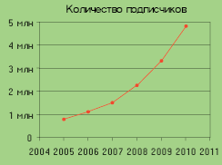 | Рисунок 8. Число пользователей широкополосного доступа в России (по прогнозам CTI). |