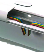 | Рисунок 1. Прокладка кабелей в верхней и нижней полостях трехсекционного короба упрощается за счет применения откидывающихся крышек. |