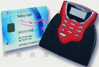 | Рисунок 2. Некоторые устройства считывания карт (в частности, соответствующий экземпляр Kobil, сконструированный для T-Systems) работают без кабельного соединения с персональным компьютером и позволяют применять разные методы аутентификации. |