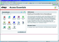 Access Essentials от Citrix — это легко внедряемое и управляемое решение терминального сервера для небольших предприятий. Инструмент быстрого запуска позволяет выполнять все необходимые для эксплуатации терминального севера настройки за очень короткое время и не требует от администраторов большого профессионализма. Благодаря автоматической инсталляции клиентского программного обеспечения ICA со стороны клиента не надо выполнять каких-либо работ по конфигурации. Что-нибудь проще вряд ли можно было придумать.