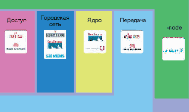 В результате почти двухлетних переговоров — речь все-таки идет о самом крупном проекте в истории компании — для «Сети 21-го века» были выбраны восемь основных поставщиков. При этом рассматривались пять областей: доступ, городские узлы, узлы магистральные (соединения между городскими узлами), логические узлы (логика управления и мониторинга услуг в сети) и передача (см. Рисунок 3). Насколько важен этот процесс для всей отрасли, можно видеть по тому, что некоторые производители стали снабжать свои продукты фразой «21 CN Proof», т. е. «Соответствует 21CN».