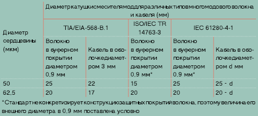 Требования стандартов к диаметру катушки смесителя мод для многомодовых тестовых шнуров.