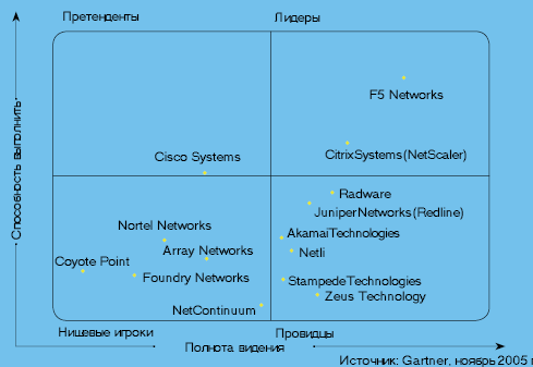 Крупнейшие производители на рынке ADC по оценкам Gartner Group.