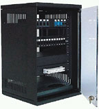 Настенный шкаф LANMASTER формата 10"имеет неразборную конструкцию со съемными боковыми панелями и позволяет устанавливать оборудование 10"с расстояниями между центрами посадочных отверстий 236,5 и 254 мм. Шкаф комплектуется металлической дверью или дверью с перфорацией. Настенный шкаф MINIMAX формата 10"в мини-системе Belconn поставляется в разобранном виде. Он выполнен из листового металла с порошковым покрытием черного цвета (см. Рисунок 7).