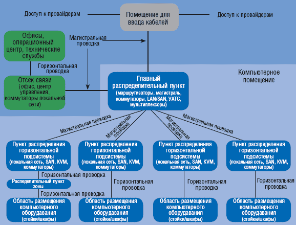 Базовая топология центра обработки данных согласно ANSI/EIA/TIA-942.