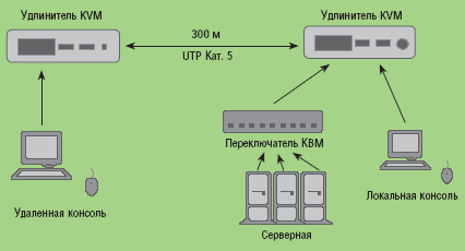 Технология KVM (Keyboard, Video, Mouse) стала одним из признанных методов управления оборудованием в серверных и центрах данных (ЦОД). Коммутируя интерфейсы монитора и устройств ввода, переключатели KVM позволяют управлять с одной консоли несколькими компьютерами и тем самым экономить на оснащении каждого из них собственным монитором, клавиатурой и мышью, располагать рабочее место администратора вне зависимости от местонахождения системного блока и даже вынести его на неограниченное расстояние.