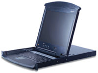 В июле ATEN, продолжая расширять линейку KVM корпоративного класса, начала поставки 32-портового KM0832 Cat5 Matrix KVM c интерфейсами PS/2, Sun, USB и VT100. Этот матричный переключатель поддерживает восемь консолей и одновременное управление 32 компьютерами (при каскадировании — до 8000). Как и прежние модели серии, устройство отличается наличием меню OSD и трехуровневым ролевым администрированием. ATEN KL1116 объединяет 16-портовый переключатель KVM, ЖК-монитор 15" или 17" и клавиатуру (см. Рисунок 7), позволяет подключать дополнительно до 31 KVM и контролировать до 512 серверов. В отличие от предыдущей модели, клавиатура и монитор выдвигаются из стойки независимо, что позволяет осуществлять мониторинг при закрытой двери шкафа. Для работы второго пользователя можно подсоединить дополнительную консоль.