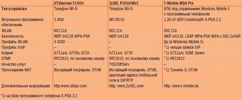 Интегральные параметры протестированных оконечных устройств VoWLAN.