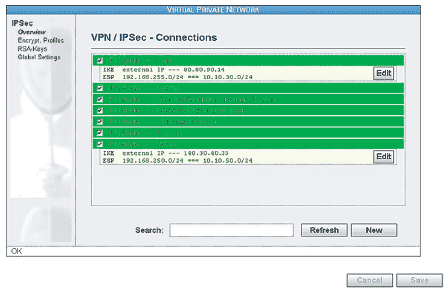 Одним из самых надежных методов, применяемых для соединения сетей, считается использование протокола IPSec, когда, в отличие от SSL, идентичность всех партнеров по коммуникации гарантируется сертификатами х.509. Множество мощных алгоритмов шифрования, включая улучшенный стандарт шифрования (Advanced Encryption Standard, AES) и тройной стандарт шифрования данных (Triple Data Encryption Standard, DES), обеспечивают конфиденциальность потока данных. Кроме того, соединение VPN по IPSec позволяет внешним сотрудникам иметь доступ ко всем ресурсам корпоративной сети.