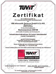 Из-за большого числа необходимых мер довольно сложно оценить, отвечает ли вычислительный центр провайдера ИТ всем требованиям. В таком случае могут оказаться полезны общепризнанные и прежде всего строгие сертификационные программы, к примеру Trusted Site Infrastructure дочерней компании группы TUV Nord под названием TUVit (см. Рисунок 1). В числе предприятий, которые уже сертифицировали свои вычислительные центры, — Мюнхенский аэропорт, Accenture, информационный центр IZB и Infineon. Полный список сертифицированных вычислительных центров можно найти по адресу: http://www.tuvit.de/XS/c.020400&zerttyp=13/r.020400/sprache. DE/SX/.