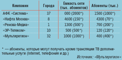 | Таблица 1. Российский рынок кабельного ТВ консолидируется. |