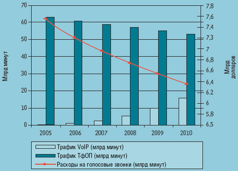 В эпоху начинающегося бума IPTV Internet-телефония оказалась чуть ли не на втором плане, однако, согласно прогнозу Gartner, этот рынок сулит еще более щедрые прибыли. Мировой рынок услуг ИТ, связанных с миграцией на VoIP, будет расти более чем на 36% в год и к 2010 г. достигнет 15 млрд долларов (см. Рисунок 10). Крупные зарубежные операторы, например Vonage, предоставляют услуги VoIP частным абонентам. По данным отчета In-Stat «2006 Consumer Broadband Survey», в США 23% домовладельцев используют VoIP. Сегодня все чаще говорят о дополнении «голоса» возможностями видео. Кроме того, индустрия Skype породила целый класс новых продуктов — телефонных аппаратов («скайпфонов») с поддержкой USB (см. Рисунок 11) или Wi-Fi, сертифицированных для работы со Skype.