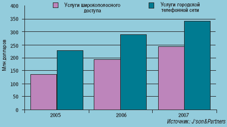| Рисунок 5. Доходы от предоставления услуг широкополосного доступа и местной телефонии для частных пользователей в Москве. |