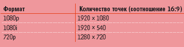 | Таблица 1. Количество точек на экране для различных форматов High Definition. |