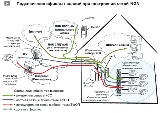 С началом эры компьютеризации стали бурно развиваться сети передачи данных (СПД) на базе IP. В некоторых офисах Internet появился даже раньше, чем телефон. Организовав высокоскоростной доступ к СПД по наземным каналам или с использованием какой-либо беспроводной технологии, оператор может предоставить клиенту и услуги телефонной связи — достаточно лишь подключить телефонные аппараты или УАТС клиента через сеть IP к платформе VoIP оператора. Аналогичные подходы применимы и при построении корпоративной сети связи (КСС).