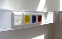 Обычно в сечениях кабельных каналов можно устанавливать большое количество розеток и модулей. Поскольку речь идет о системе, то такие короба имеют все необходимые аксессуары — углы, повороты, заглушки и суппорты. Но, как и в случае с мини-колоннами, следует предварительно выяснить способ крепления розеток и модулей. Если предполагается, что в кабельных каналах будут монтироваться розетки под рамочную конструкцию по типу «евростандарт», то производитель должен иметь специальные суппорты с расстоянием между посадочными винтами 60 мм, как, к примеру, в кабель-каналах Rehau (Германия). Если же в дальнейшем предусматривается использование модульных электроустановочных розеток, то необходимы установочные модульные суппорты, к примеру короба Legrand или Quintela. У некоторых производителей есть универсальные решения, позволяющие монтировать в одном корпусе кабель-канала оба стандарта розеток и модулей, к примеру у Efapel (Португалия) или «Экопласта» (Россия). Таким образом, на этапе проектирования вопрос о стандарте электроустановочных изделий отпадает, поскольку сеть можно смонтировать в любых комбинациях (см. Рисунок 3).