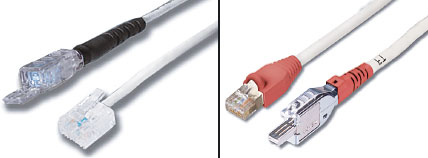 На втором конце комбинированного шнура находится вилка разъема RJ-45 или RJ-11, обеспечивающая подключение к сети Ethernet (см. Рисунок 4). Требования к кабельной системе Класса FA в настоящее время рассматриваются ISO. Они предполагают применение разъема, который несовместим с традиционным соединителем модульного типа RJ, и улучшенного кабеля Категории 7а, работающего в полосе от 1 до 1000 МГц.