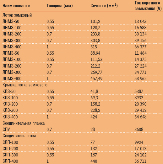 Для удобства потребителей приводятся максимальные токи короткого замыкания, которые лоток/короб и его соединители способны выдерживать. Время протекания тока определялось как t≤2c (по ГОСТ Р 50030.2-2000). Все эти токи указаны в Таблице 1.