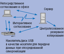 Альтернативное решение предлагает технология синхронизации, позволяющая согласовать файлы, произвести их резервное копирование и тиражирование. Если построение временных соединений с сервером по виртуальной частной сети (Virtual Private Network, VPN) осуществимо, то каталоги с файлами удается ежедневно согласовывать с данными, находящимися на сервере. Когда же подключение к сети возможно только в офисе, сохранение данных в пути на внешние носители приобретает еще большее значение, однако применяемое программное обеспечение остается тем же самым. К сожалению, в указанных ситуациях лишь немногие инструментальные средства отвечают представленным ниже профессиональным требованиям.