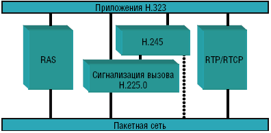 Плоскость обслуживания вызовов стандарта H.323 включает три основных протокола (см. Рисунок 1): протокол взаимодействия оконечного оборудования с привратником RAS (Registration, Admission and Status), протокол управления соединениями H.225 и протокол управления логическими каналами H.245. Для передачи сигнальных сообщений RAS используется протокол UDP, а для передачи сигнальных сообщений H.225 и H.245 — протокол TCP с гарантированной доставкой информации. UDP не обеспечивает гарантированной доставки информации, поэтому, если подтверждение не было получено в установленное время, сообщение передается повторно.
