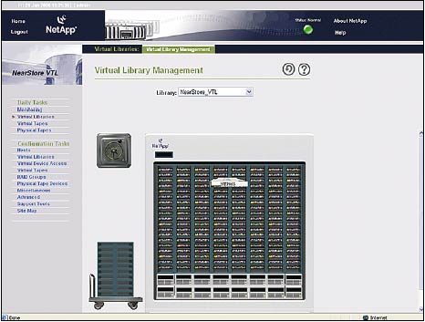 Программное обеспечение для управления VTL должно быть столь же простым и интуитивно понятным в обслуживании, как и конфигурация библиотек, ленточных накопителей и кассет (см. Рисунок 2). Если VTL инсталлируются в филиалах или отделах за пределами вычислительного центра, то на этот случай необходимо обеспечить возможность удаленного централизованного управления одной или несколькими системами.