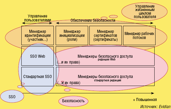 Столь же быстро развивается и рынок программного обеспечения для IAM. По прогнозам IDC, к 2009 г. объем рынка составит почти 4 млрд долларов, а ежегодные темпы его роста достигнут 10%. Рынок средств для однократной регистрации (Single Sign-On, SSO), которые являются частью программного обеспечения IAM, будет возрастать даже на 15,9% в год, поскольку на предприятиях предпочитают начинать реализацию проектов IAM с приобретения именно этого модуля, прежде чем взяться за следующие, более дорогие этапы, включая интеграцию каталогов, централизованное управление пользователями и их правами, а также управление ролями.