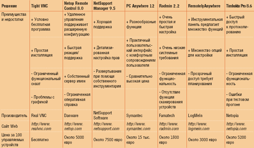 с которых разрешен доступ. Что касается объема, то Radmin не имеет конкурентов, вдобавок он очень быстро вводится в эксплуатацию, зато ему не достает функций, предлагаемых другими инструментами той же категории. Однако для определенных целей эти ограничения не являются недостатком.