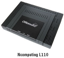 Сетевой терминал Ncomputing L110 представляет собой бездисковое беспроцессорное решение для организации централизованных серверных вычислений и удаленных рабочих мест. В его основе — вычислительная система на одной микросхеме (System-оn-Chip, SoC) с программируемой логикой NC16C24A на базе собственной запатентованной технологии. Терминал оснащается оперативной памятью на 8 Мбайт, флэш-памятью на 512 Кбайт для хранения настроек и загрузчика и сетевой микросхемой Realtek.