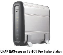 Многофункциональный NAS-сервер TS-109 Pro Turbo Station от QNAP для рынка SOHO поддерживает высокопроизводительные диски SATA общей емкостью до 1 Тбайта и возможность расширения до 2 Тбайт за счет подключения внешних высокоскоростных винчестеров eSATA или USB 2.0. Сервер отличается бесшумной работой и низким энергопотреблением — всего 14,4 Вт. С его помощью пользователь может сконфигурировать сетевую систему для любых задач хранения, не прибегая к помощи системного администратора. Поддерживаемый набор функций включает файловый сервер, ftp-сервер, принт-сервер и т.д.