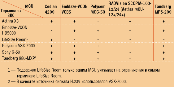 В качестве контрольных терминалов ВКС, которые использовались для проверок на совместимость, были выбраны Aethra X3, Emblaze-VCON HD5000, LifeSize Room, Polycom VSX-7000, Sony G-50 и Tandberg 880-MXP.