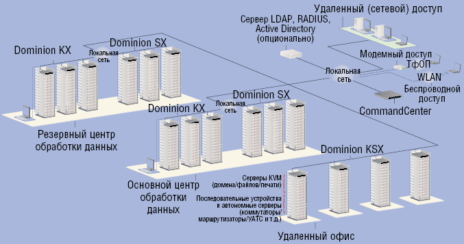 Рисунок 1. Решения Command Center NOC и Secure Gateway от Raritan представляют собой выделенные устройства для централизованного управления распределенными переключателями KVM, выпускаемыми этим производителем.