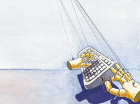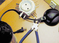 Затем пришла пора дальних журналистских командировок с ноутбуком, который в то время не так просто было подключить к сети. Приходилось надеяться на то, что в телефонной книге отеля отыщется номер местного провайдера. Затем требовалось настроить модем в соответствии с тональным набором, принятым в стране пребывания, а также учесть особенности местной телефонной станции. Ноутбуки часто снабжались громоздкими штепсельными вилками Schuko, которые не подходили к стандартным дорожным сетевым адаптерам. На фотографии запечатлены результаты ночных бдений в Кремниевой долине примерно в 1999 г. Прямо в ночь прибытия первым делом пришлось найти кусачки, чтобы обработать пластик адаптера (если присмотреться внимательно, видно «надгрызанные» части). Безопасность? Разве что защита от вирусов, но не более того.